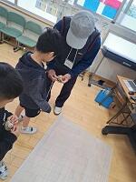 そこで、3年生はそろばん教室の先生に来ていただいて、大きなそろばんをつかってお勉強しました。