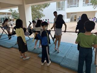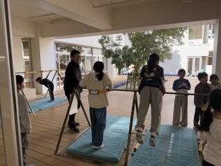 運動場が使えなくなり鉄棒が中庭に設置されて、休み時間や放課後はいろんな技に挑戦する子どもたちでいっぱいです。