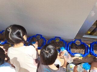 みんなで何かを植えたようですよ、この時期といえば何でしょうか?