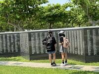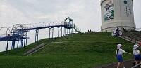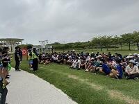 3年生が福祉センターの展望台から石嶺の町なみを確認しました。
