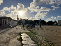 空には虹が!虹を見たらいいことがあるそうです。石嶺小のみんなと手伝って下さった保護者の皆様にいいことがありますように!
