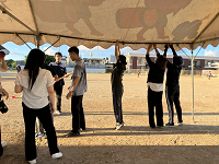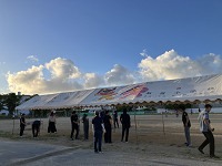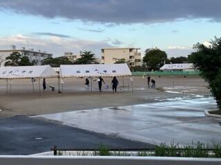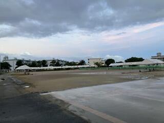 昨日体育担当の先生やお手伝いしてくれた先生たちが本部席のテントを設営しました。