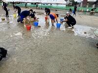 昨年に引き続き朝の排水?では保護者の皆様が一緒に作業して下さり、本当に感謝しています。おかげさまで演技も走もバッチリだったと思います。高学年のお手伝いもありがとう。