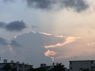 終了のあいさつのときに飛行機雲が!清々しい!ご褒美かな?