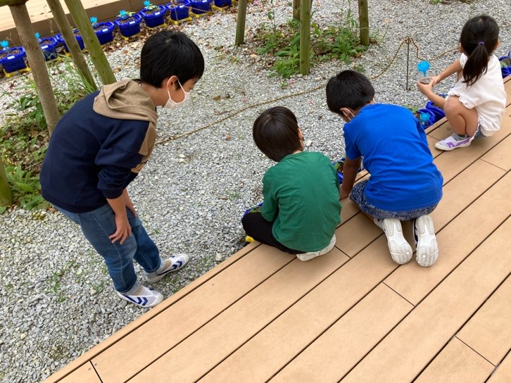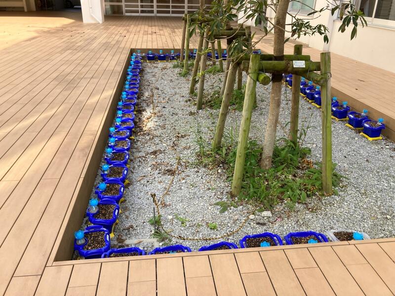 でも台風対策はばっちり!1年生のあさがお 2年生のピーマン 3年生のキャベツは安全な場所に避難しています!