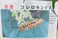 見つけてもさわらないでください。」と書かれています。近くに行くだけで毒針が飛んできたりするので木の側に近寄らないでね!