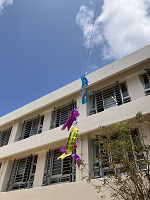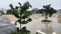 スマイルの入り口にでいごの花をたくさん咲かせたからでしょうか台風が来てしまいました!