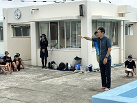 担任の先生から、大雨が降っている時の下校の注意事項を聞いて