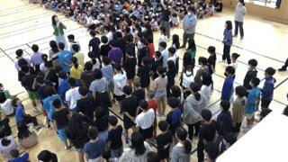 800名あまりのお友だちが、静かに速やかに安全に体育館に移動することができました。