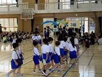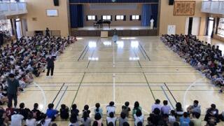 久しぶりに全校児童が集まって音楽朝会が行われ、みんなで校歌を歌いました。
