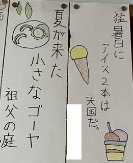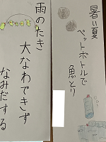 外に出られないから退屈ですね。そんな時は短歌や俳句を作ってみるのはどうでしょうか?「台風」を季語にするのもいいですね。高学年の教室で見つけた短歌や俳句を紹介します。