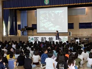 「たくさんの人が亡くなったと知りました。」「平和が一番だと思いました」「戦争を起こさないようにしたいと思います」などの感想がありました。22日の給食にはおいももでていました。いもさえも食べられない日が続いたんだろうなぁ...
