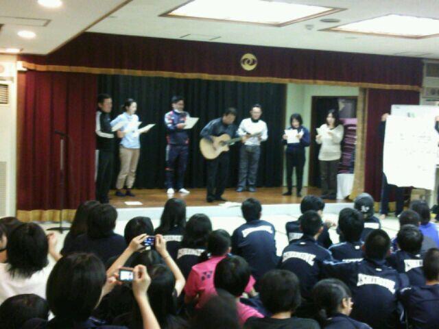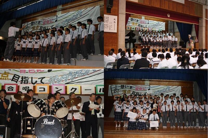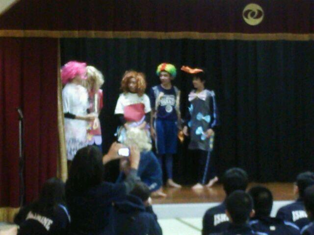 1位は4組のシンデレラ、2位は2組の白雪姫・マリオでした。3組はMOMOTAROU、1組はジャックと豆の木でした。職員も「アタックナンバー1」の替歌石嶺中バージョンを合唱し、おおいに盛り上がりました。