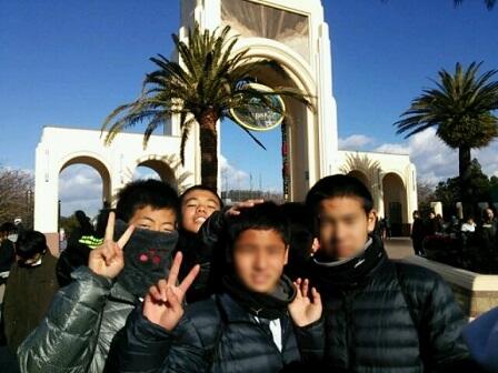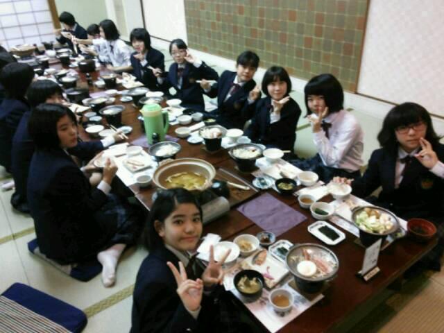 男生徒一人腹痛ぎみ、あとは元気です。いまから京都にむかいます。