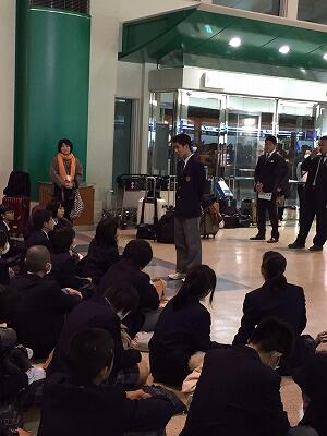出発式も終わり、いよいよ出発です。148名体調不良なしで行ってきます。出発式の司会は神谷かすみさん、代表挨拶は金城こうき君、保護者代表は照屋さんでした。