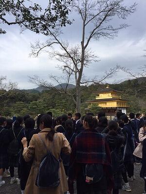 今、13時、金閣寺です。あいにくの雨で寒いです。これから京都班別自主研修です。