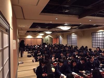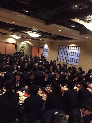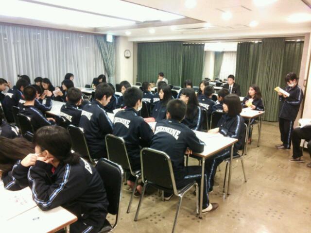 ホテル入館式行いました。司会は、1組の伊礼つばさくん。支配人の十河さんの挨拶のもと、みんなワクワクしながら入館式を終えました。気分不良の生徒はなしです。