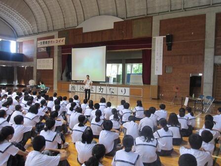 7月4日(火)に、講師の先生をお招きし、全学年で交通安全講話を行いました。
