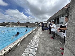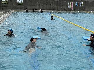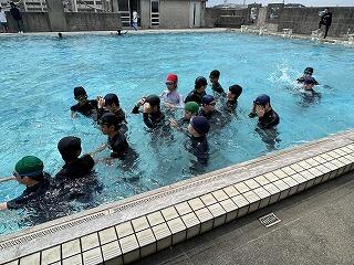 蹴伸びやバタ足、プールの周囲を回って水の流れを作った後は、一人一人の現時点での泳力調査が行われました。マックスで25mということでクロールで泳げる距離を測定しました。水泳の授業が終わるころには、みんなが今の自分より少しでも上達してくれるといいですね!