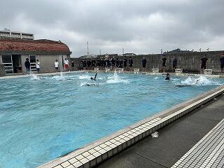 少しだけ水が冷たいようでしたが、お互いに水をかけあって体をならしていきます。水しぶきをあげながらとても楽しそうでした。