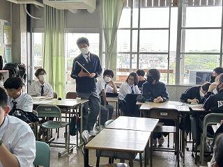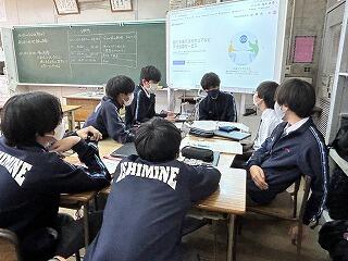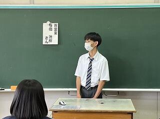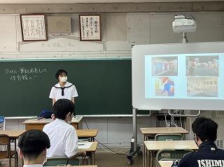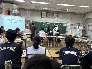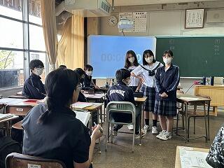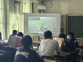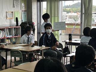 今日の授業は探究テーマ設定の理由や探究方法を発表し、お互いにツッコミ質問をし合い中身を深める活動でした。