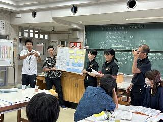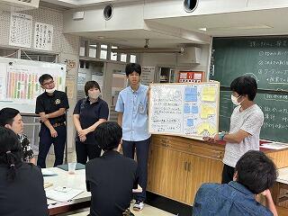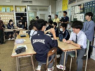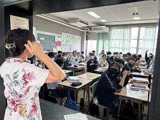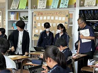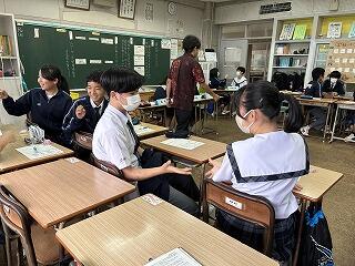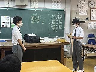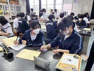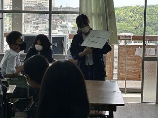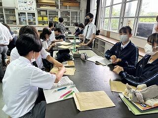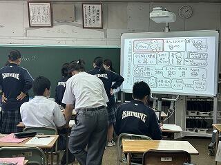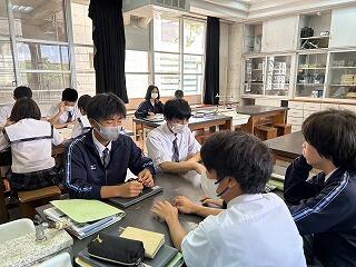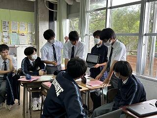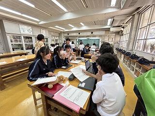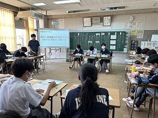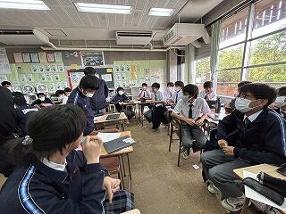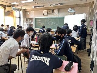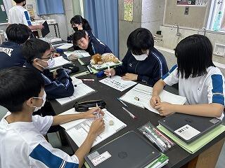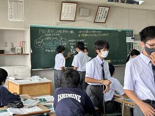 設定理由がしっかりしていたら、説明にも説得力があります。ツッコミの質問に対して答えながら、今後どのように進めていくのか方法について考えたり、もっと調べたり深めたりすることが明確になることもあります。批評し合うツッコミ質問に慣れない生徒は、アドバイスという優しい言葉に変えて助言したりしていました。教室によって生徒の距離感が違うので、意見を出しやすいかどうかも違ってきます。1時間の授業の中で、様々な気づきがある研究授業でした。