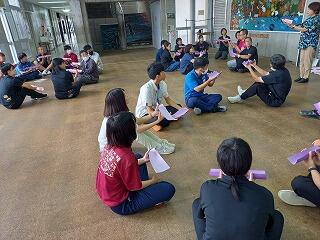 自分の殻をやぶり、仲間の中でありのままの自分でいられるように少しずつ仲良くなっていく構成になっています。即興でペアであるものになりきるインプロゲームや、納豆の川を協力して渡るPAゲームなど、実際に生徒におろすときにどんな工夫が必要なのかを途中途中でシェアしながら、教育実習生も一緒になって、とても有意義な研修となりました。学級や学年でぜひ取り組んでみてくださいね!