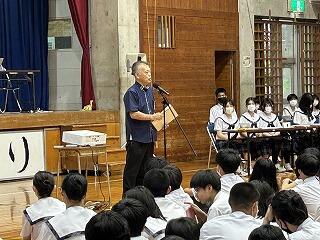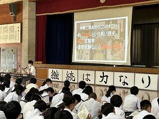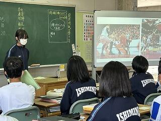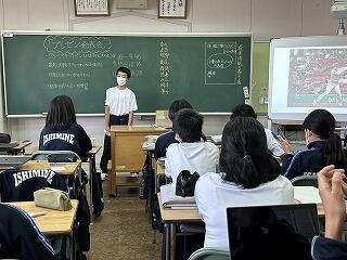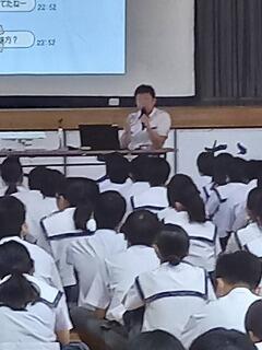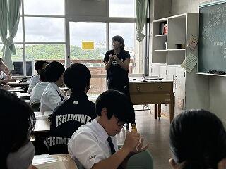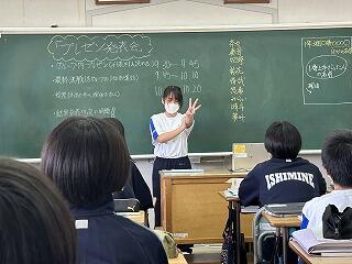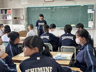 これから教科の授業で2週間から3週間、先生方にお世話になります。たくさん声をかけて石嶺中の素晴らしいところや皆さんの素直で元気なところをぜひ紹介してください。