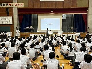 今はまだ、どの高校に進学したいのかはっきりしていない生徒もいたと思いますが、このように現役高校生の先輩の姿を目の当たりにして、一気に自分事としてとらえられたと思います。憧れの先輩方の話を聞いて、今から自分は何をどうするべきか、一人一人が真剣に考えるとても貴重な学習会になりました。高校生の皆さん、どうもありがとうございました!!!