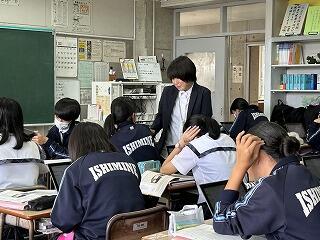 本日、石嶺中学校に3名の教育実習生がやってきました!