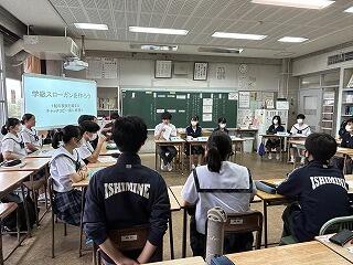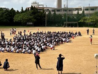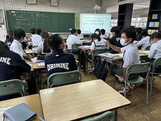 本日、石嶺中学校は那覇市教育委員会の計画訪問がありました。山城良嗣教育長はじめ、30名ほどの教育委員会の皆様が石嶺中学校の授業の様子を参観してくださり、多くの激励とご助言をいただきました。