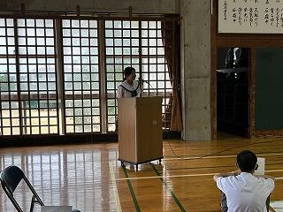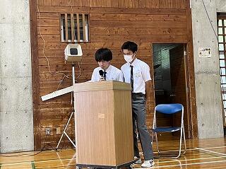 生徒会長、校長あいさつの後、生徒の代表が総会宣言を行いました。