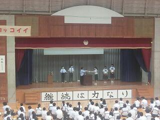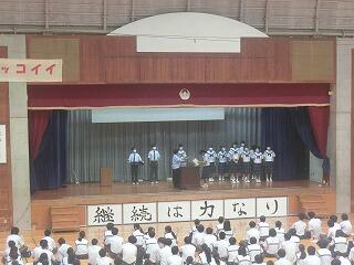 本日放課後、那覇地区中体連夏季総体に向けての選手激励会を開催しました。