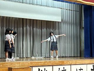 発表順は最後の6番目。他校の素晴らしいスキットの表現を見ながら、緊張してはいましたが悔いのないよう自分たちの力を出し切ろう!という決意の姿がありました。学校でのリハーサルの時より数倍声も大きく、演技力もアップしており、堂々と英語で表現してくれました。終わった後、拍手をしながら英語科の先生方が涙しているのにも感動しました。一番印象に残ったのは、ステージで思い切り自分の力を発揮することができたみんなの満足そうな笑顔でした!