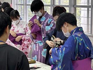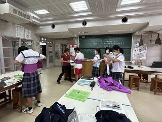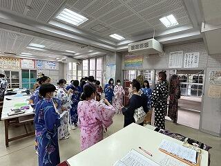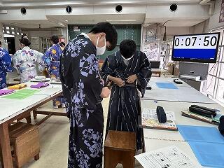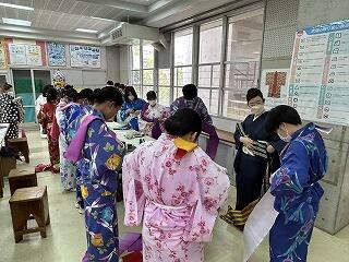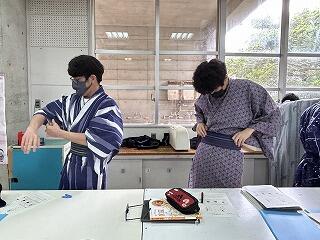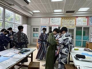 家庭科で浴衣の着付け体験!
