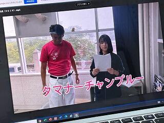 本日、サプライズ企画、お昼の校内放送でうちなーぐち講座!スーパースペシャルゲストじゅん選手が登場しました。事前準備で放送委員会がじゅん選手と撮影した動画を全学級をつないで視聴してもらい、その後、本物のじゅん選手がランラジ(生徒会ランチラジオ)にサプライズで生出演するという作戦でした。