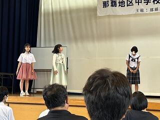 24日(土)仲西中学校体育館において、令和5年度那覇地区英語スキットコンテストの第2ラウンドが開催されました。第1ラウンドのビデオ審査を通過した代表6校による発表が行われました。