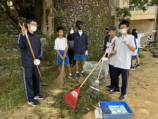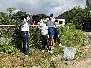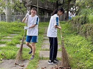 とても蒸し暑い中での作業になりました。みんなの頑張りのおかげで石嶺中学校の環境もきれいになりました!