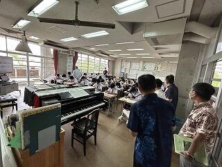 本校吹奏楽部と合唱部は、顧問の上原清秀先生のご指導のもと、今年度から一つの部として活動を行っています。