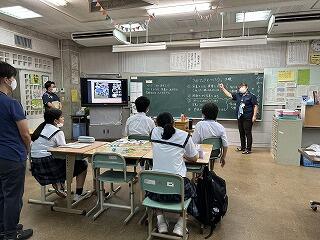 2年1組の社会科では、沖縄県に日本全国の7割の基地負担がありますが社会生活にどのように影響があるかという質問に、沖国大へのヘリ墜落事故や埋め立てで沖縄の自然の青い海、サンゴやジュゴンへの影響など手を挙げて答えていました。