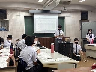 生徒会長のあいさつ、総会宣言、議長団選出が行われ、各教室でもしっかりと生徒一人一人が画面を通じて、真剣に総会に参加している様子が見られました。