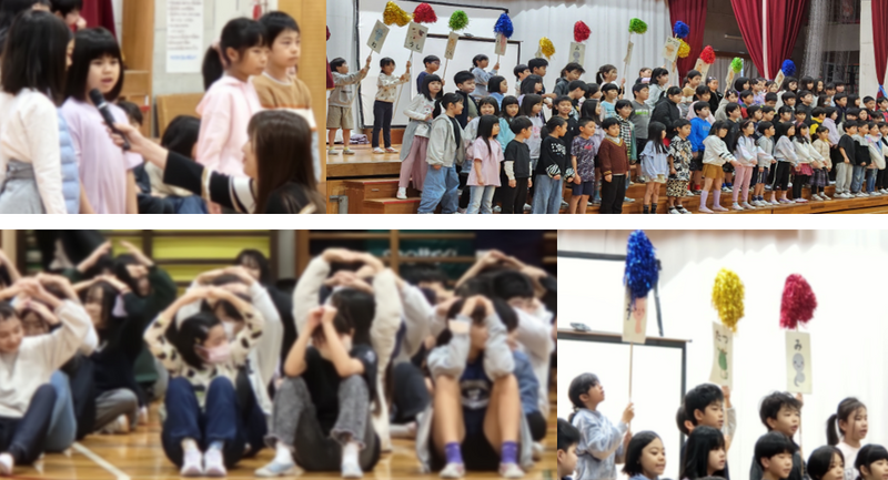 そして最後は、全校生徒で2年生の振りをまねしながら、楽しく「干支の歌」を歌いました。