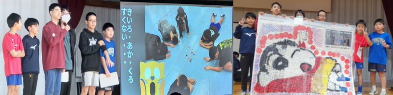 全校児童にアンケートを取り、子どもたちが好きなキャラクターを決定し、全校児童にペットボトルのキャップを集めるよう呼びかけ、コツコツ取り組んでいました。しかし、ペットボトルのキャップは白が多く、赤や黄色や黒のキャップがなかなか集まらずとても苦戦していました。しかし、あきらめず粘り強くキャップを集め続け、とうとう完成お披露目の日を迎えることができました。広報掲示委員会さんのカウントダウンで、キャップアートをお披露目したときには大きな歓声があがり、子どもたちとても喜んでいました。学校全体を明るく盛り上げるため、コツコツ粘り強く取り組んだ6年生の姿はとてもかっこよかったです。