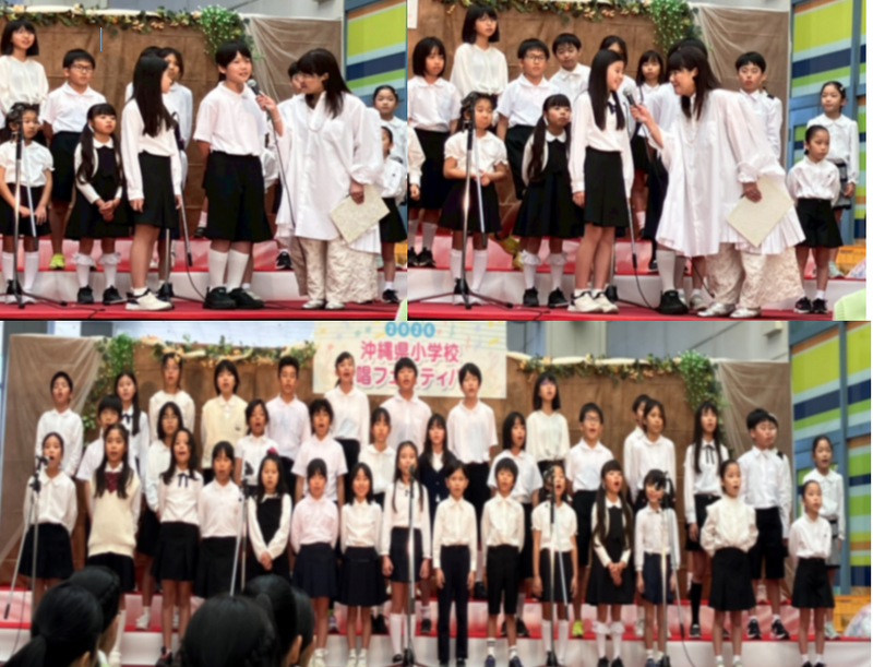 本日の朝会は音楽デーでした。まず最初に、4年生が「チャレンジ!」という曲を、声の強弱にこだわりながら合唱。「やりたいことがあるなら、思い切りやろう!」でポーズを決めたり、「・・・生き方は自分が決める!」と力強く発声したり、心に響く歌唱を披露。そのあと、全校児童で一緒に歌うことができました。続いて、2月14日(土)に那覇メインプレイスで開催される合唱フェスティバルへの参加児童が歌を聴かせてくれました。音楽専科の高良愛華先生が休み時間や放課後にご指導くださり、子どもたちは歌う楽しさや人前での緊張感など、たくさんのことを経験しています。こうした音楽に関わる機会を通して、子どもたちの心が豊かになってくれたらいいですね。4年生の皆さん、ありがとうございました。そして合唱フェスティバル歌唱隊の皆さん、きっと素敵な思い出になりますよ。当日、応援していますね。