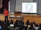 2月12日(水)2・3校時にPTAが主催し、5・6年生に向けた「てるてるさん(砂川正美さん)の講話」を開催しました。「夢をかなえる黄金の5カ条」についてでした。講演会終了後は、ノートをもらい、そのノートにてるてるさんのサインと言葉を書いてもらう児童が続出。児童達にとっても、自分の夢を考える大切な時間になりました。
