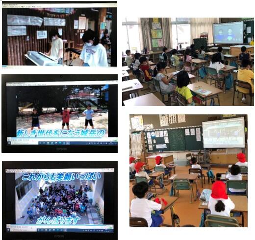 5年生は、4月に入学した1年生に早く校歌を覚えてもらいたいという思いから、自らダンスやふりつけを考えるなど各グループとも工夫して合唱しました。(動画による)視聴した1年生に感想を聞いてみると「お兄さん、お姉さんの演奏と歌が上手でした」「ダンスがカッコかった」「早く校歌を覚えたいです!」等の感想がありました。