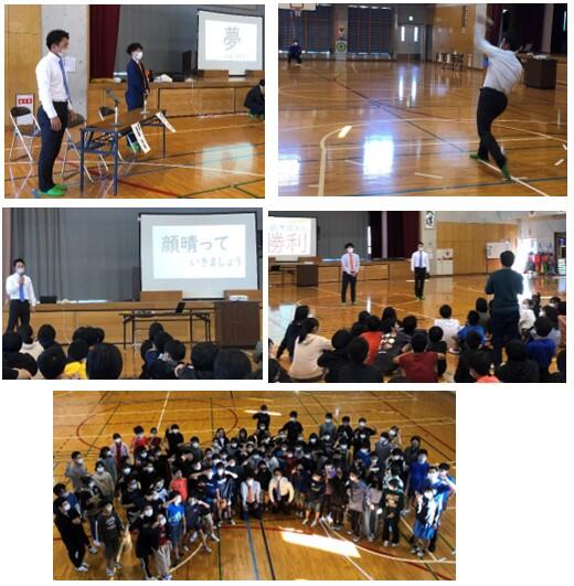 講演後の交流では、本校の野球部の児童と島袋さんによるスピードガン対決や記念撮影を行い、会の最後では、島袋さんから「顔張っていきましょう!」「顔が晴れる、笑顔で頑張っていきましょう!」とエールを贈られ、会場の皆が笑顔になれた素敵な時間を過ごしました。