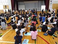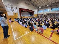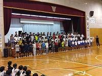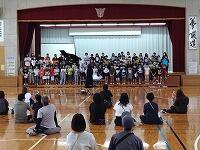 5月22日(水)の音楽朝会で、5年生が元気よく校歌を歌いました。その後、全児童で校歌を合唱し、元気な声を体育館いっぱいに響かせました。とても気持ちの良い歌声でした。他の学年の音楽朝会も期待しています。