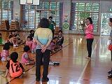 毎週月曜日の1校時は、スマイルタイムでスマイル1~5組までの児童が集まり、自立活動(運動)を一緒に行います。今日は、「ぴーす」の仲里実加先生が来てくださり、スマイルの児童を指導してくれました。鬼ごっこや綱引き、とても楽しそうでした。仲里先生、ありがとうございました。
