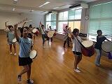 11月の運動会のエイサーに向けて、5年生のリーダー達がエイサーの練習を開始しています。時間は放課後、短い時間で大太鼓やパーランクーの振り付けを一生懸命覚えています。みんな笑顔で楽しそうでした。
